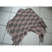 Ein schöner Poncho in rosa-grau mit Fransen. Einheitsgrösse.