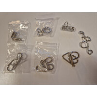 6 verschiedene Geduldsspiele Knobeleien. Wie bekommt man ohne rohe Gewalt die Teile auseinander? Eins ist doppelt, das lege ich auch mit dazu, also ... mehr
