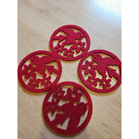 Wunderschönes vintage 4er-Set aus roten Filz-Untersetzern mit charmantem Vogelmotiv. Perfekt für Retro-Fans, Sammler oder als nostalgische ... mehr
