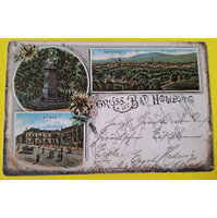Ak Litho Gruss aus Bad Homburg,Kurhaus,Denkmal Friedrich lll., Total Ansicht,gelaufen 1897,Marke ab,bestoßen,Fleck ... mehr