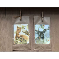 Plus 2 große Tüten mit Eichhörnchen- und Hirschmotiv. Mit historischer Holzwäscheklammer zum ... mehr
