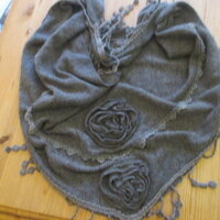 vorn in der Mitte 2 aufgenähte Rosen - seitlich Fransen - Spitzenbordüre sh. Foto - Länge in der Mitte an den Rosenherunter gemessen:46 cm ... mehr