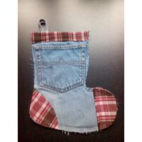 Dieser Nikolausstiefel ist im Ragtime-Stil aus einer alten Jeanshose und Hemdenflanell genäht. Die Vorderseite hat eine augenähte Tascue von der ... mehr