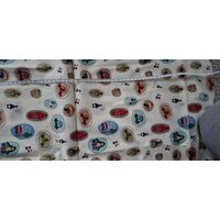 Großes Stoffstück, Baumwolle, weißer Untergrund, Muster mit verschiedenen bunten Elementen, geeignet für viele Nähprojekte ... mehr