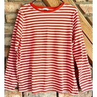Klassisches Ringelshirt in rot-weiß - Jersey aus 100% Baumwolle (ohne Elasthananteil) - Gr. laut Etikett 44/46, fällt aber etwas kleiner aus, eher ... mehr