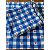 Sechs Stück fröhliche Vintage-Servietten aus den Siebzigern mit Karo-Herz-Muster - wahrscheinlich Baumwolle - insgesamt 6 Stück, alle etwas ... mehr