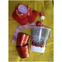 Rot siehe Fotos (Töpfe ca. Ø 12 x 13, 5 / Ø 7 x 6, 5 / Ø 6 x 9, 5 cm)