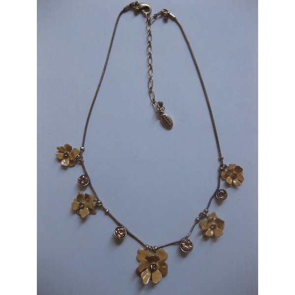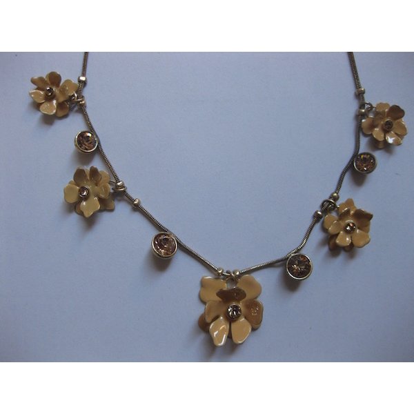 schicke Kette von Pilgrim, schöne Blüten in creme beige, kurze Kette, liegt eng am Hals, etwas größenverstellbar durch mehrere Ösen