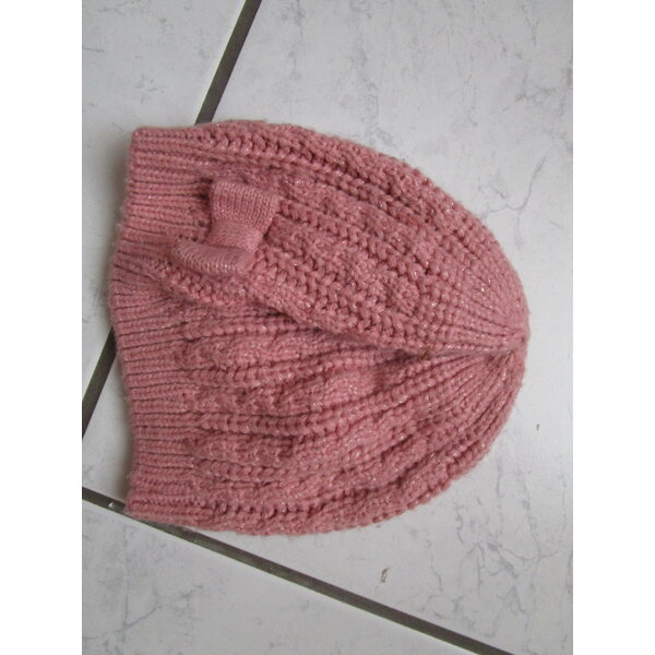 süße Mütze pink Strickmütze mit Glitzer Lurex Schleife kuschelig warm