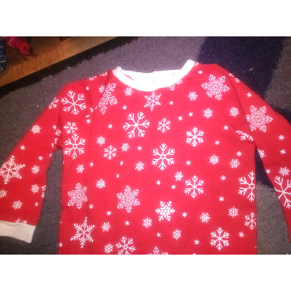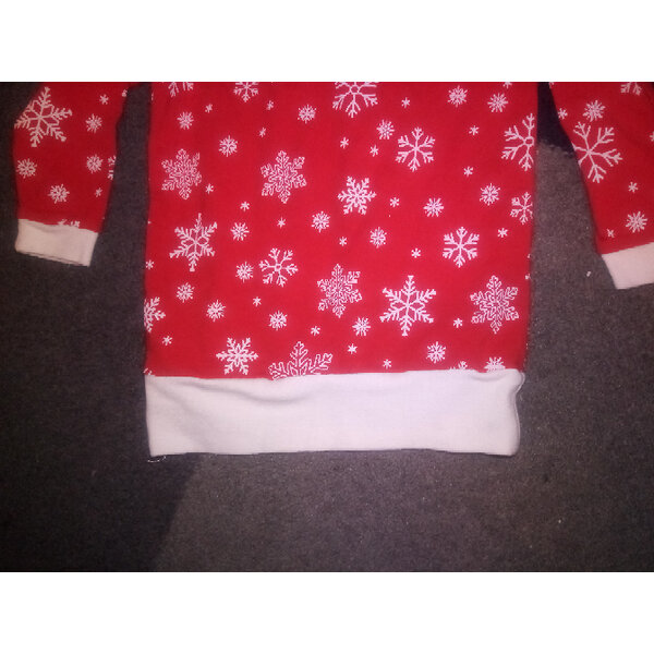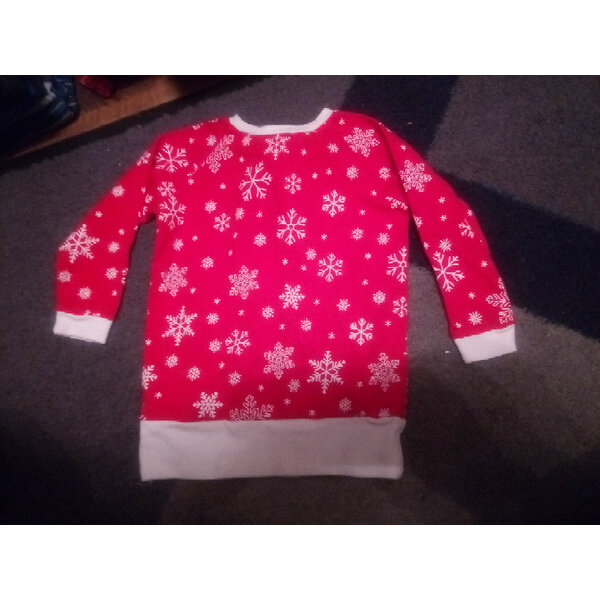 toller hübsch aussehender Weihnachtspulli in rot mit weißen Schneeflocken,