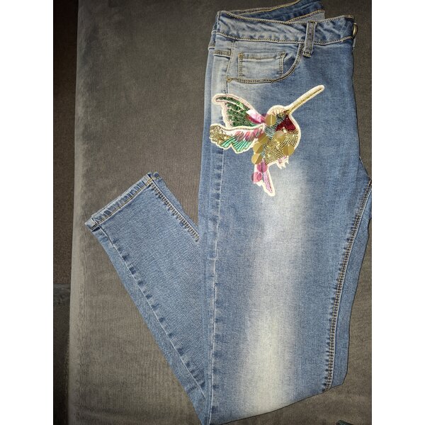enge Jeans (Dreiviertellänge) mit toller Kolibri- Applikation