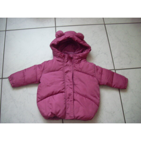 Eine süße und warme Steppjacke für den Winter. Die Jacke hat eine Kapuze mit süßen Ohren, vorne einen Reißverschluss incl. Knopfleiste zum schließen. Unten ist ein Gummizug. Die Jacke ist von ergee in Größe 68.