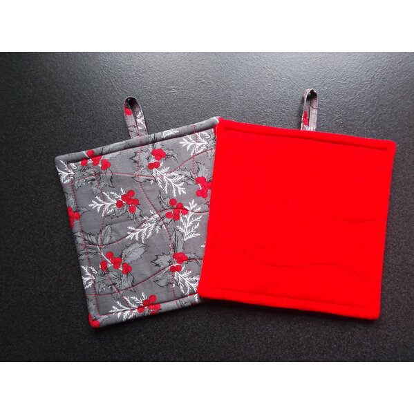 Diese Topflappen wurden aus einem weihnachtlichen Patchwork-Baumwollstoff genäht und mit einem roten Baumwollstoff für die Rückseite verstürzt. Sie sind mit Thermolam doppelt wattiert. Ein besonderer Blickfang in der Küche in der Weihnachtszeit.