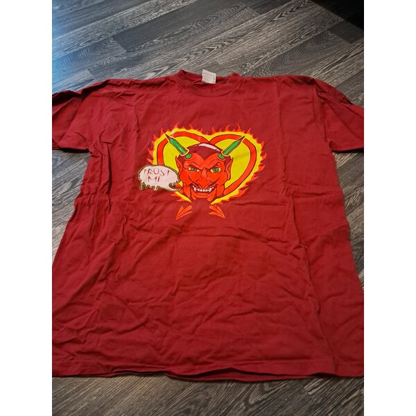 Biete hier von Urban Attitude ein weinrotes Tshirt. Vorne ist ein großer teufel abgebildet.
