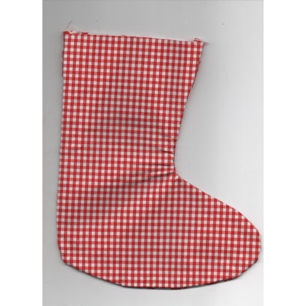 Selbstgenähter, unbenutzter Nikolausstiefel aus Stoff.