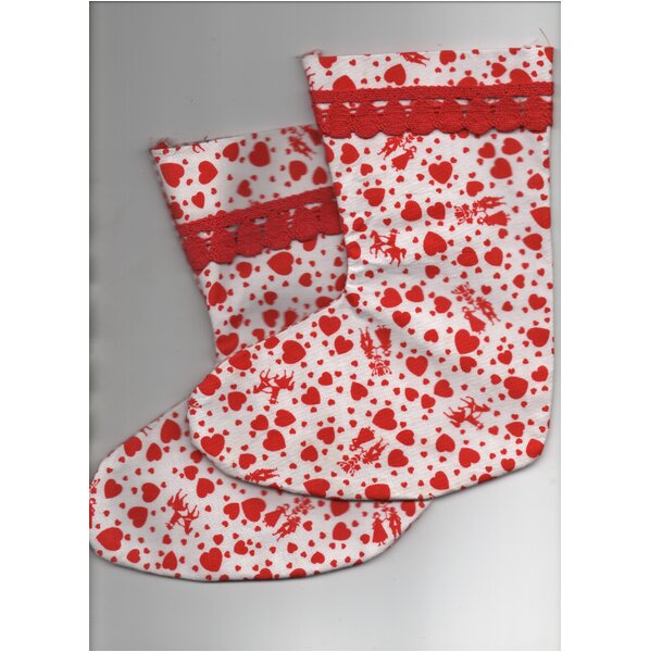 Die Stiefel sind aus Baumwolle mit Weihnachtsmotiven, etwa 20 cm lang und am Schaft ca. 11 cm breit.